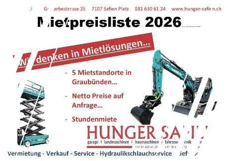Über die Mietstandorte Jona, Safien, Castiel, Tavanasa und Rothenbrunnen können die Maschinen schnell und Flexibel ans Einsatzort geliefert werden.